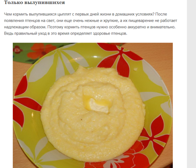 Okrem toho kurčatá v prvý deň života potrebujú látky, ktoré boli vo vajci. To zahŕňa žĺtok a bielkoviny. Iba tu by sa malo vziať do úvahy, že napriek tomu, že kurčatá veľmi radi jedia vajcia natvrdo uvarené, nie je vhodné takéto kŕmenie zneužívať. V opačnom prípade budú mať kurčatá hnačku, čo je pre malé kurčatá veľmi nebezpečné.