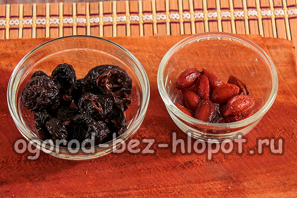 Odstráňte semená zo sušených sliviek. Ak máte tvrdú, príliš suchú vodu, vylejte ju aj vriacu vodu a keď je dusená, vyberte z nej kameň.