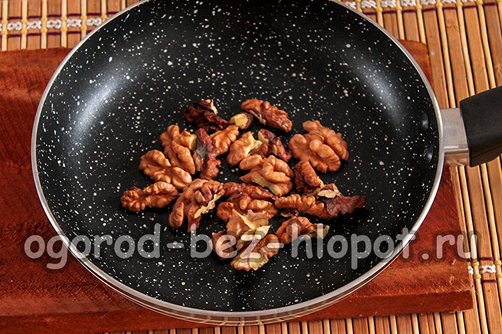 Nalejte orechy do suchej horúcej panvice. Za stáleho miešania mierne suchý, aby orechy mali chuť a horkosť zmizla. Po ochladení vyčistíme od hnedej šupky.