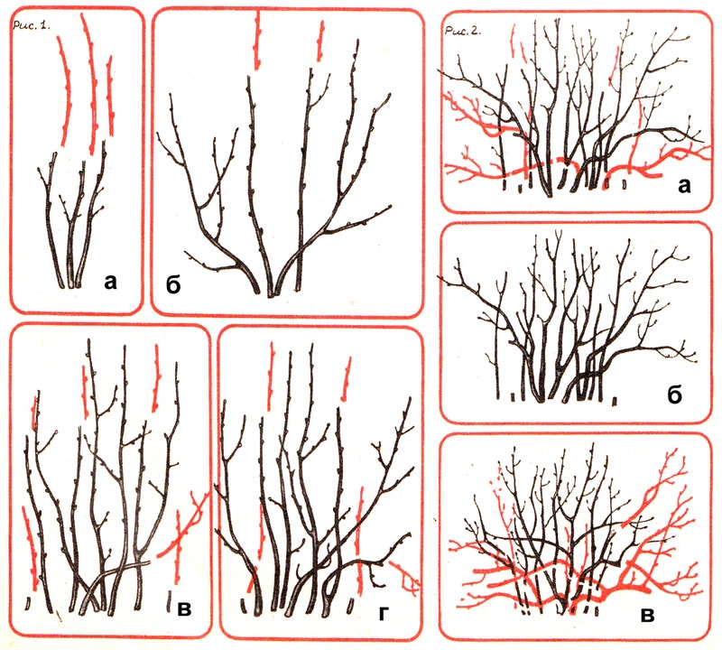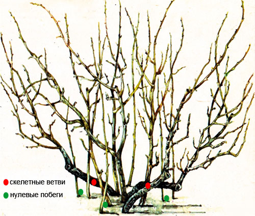 Vyrezávanie dospelých kríkov Vo veku 5 rokov sa zvyčajne koná každý pád. V tomto prípade sa z nej odstránia všetky suché a poškodené vetvy. Zvyčajne väčšina starých výhonkov vyčerpá rastlinu a znižuje výnos kríkov. Preto musia byť odstránené.
